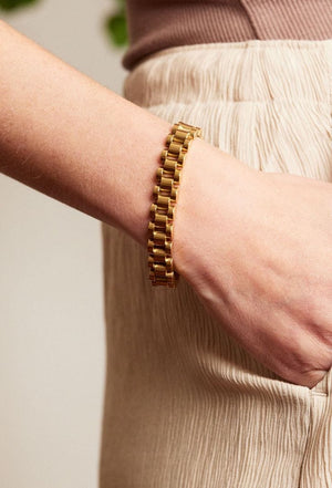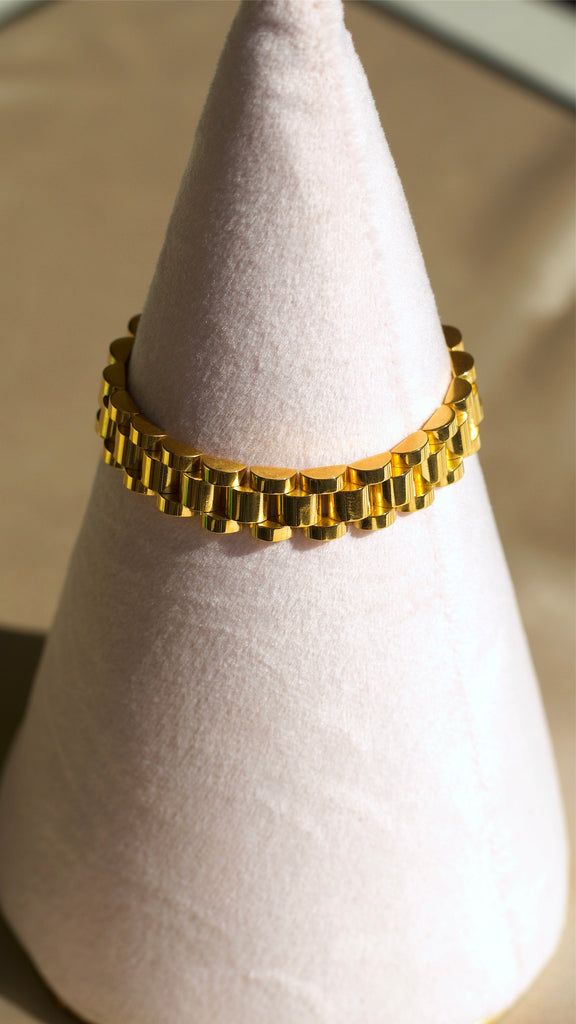 Rolex-style bracelet made from pure stainless steel with lasting shine. Wide, elegant, lightweight, and comfortable. Comes with a 6-month color and shine warranty.