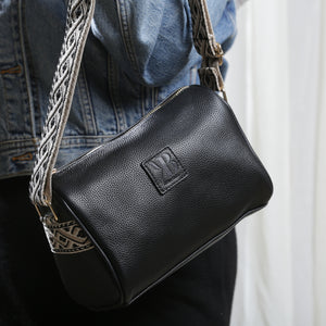 This bag will be your perfect companion for all your outings. Made from imported Italian leather, it exudes sophistication and luxury. It also features a sturdy and easy-to-use metal zipper. Its practical design and elegant embroidered strap add a stylish touch to any look, whether casual or formal.
