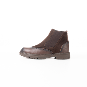 Premium men’s ankle boots crafted from natural cracked leather with elegant suede detailing. Features a flexible anti-slip rubber sole, orthopedic inner cushioning, and side elastic panels for easy slip-on. Combines classic style with all-day comfort, making it ideal for winter and suitable for both casual and formal looks
