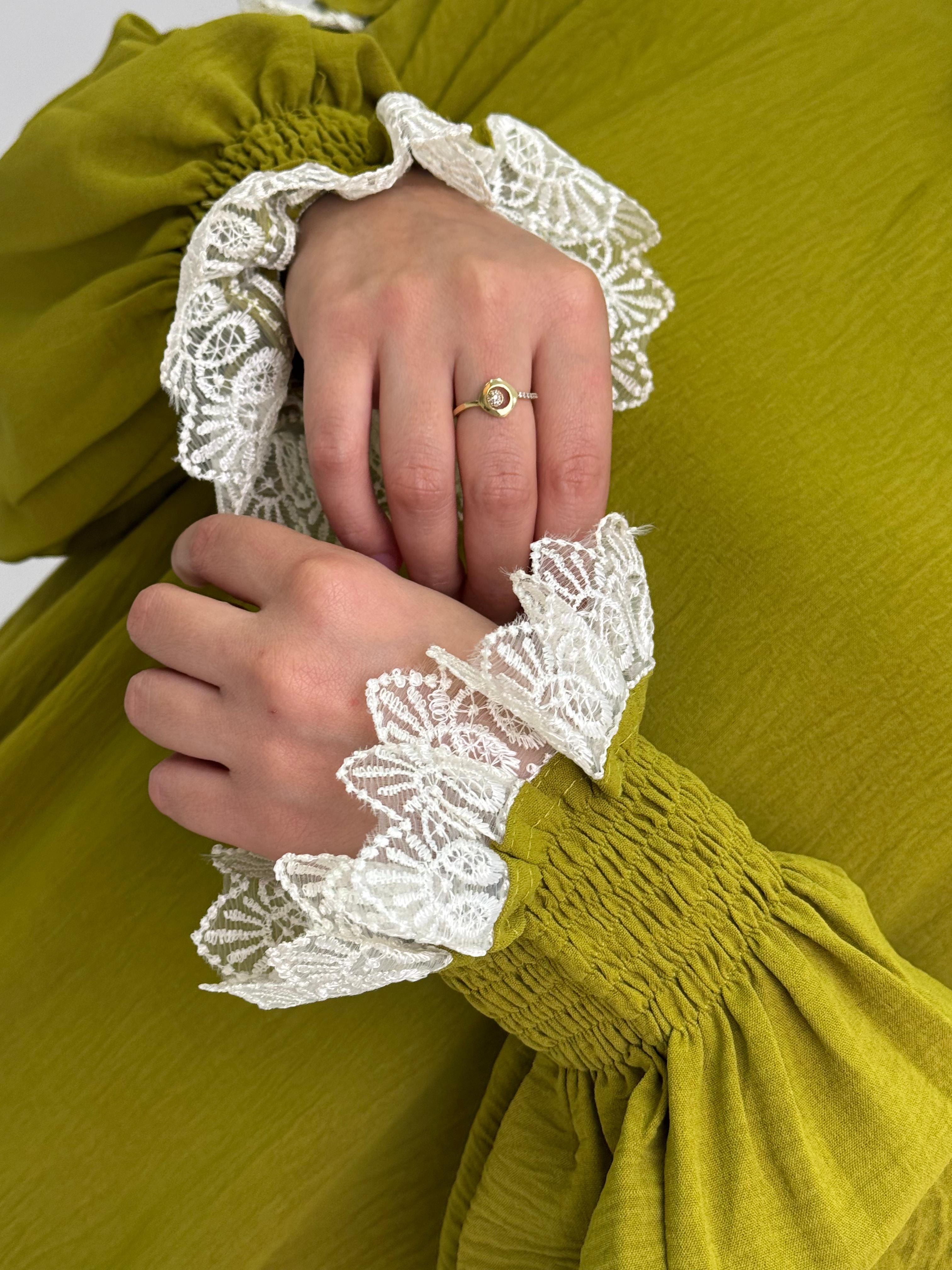 التطريز مصنوع من جوبير قطني مستورد بلون سكري دافئ، مع استثناء اللون الأسود الذي يأتي بتطريز جوبير أسود فاخر.