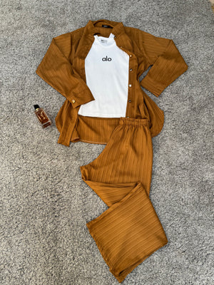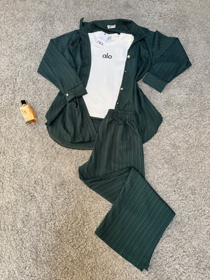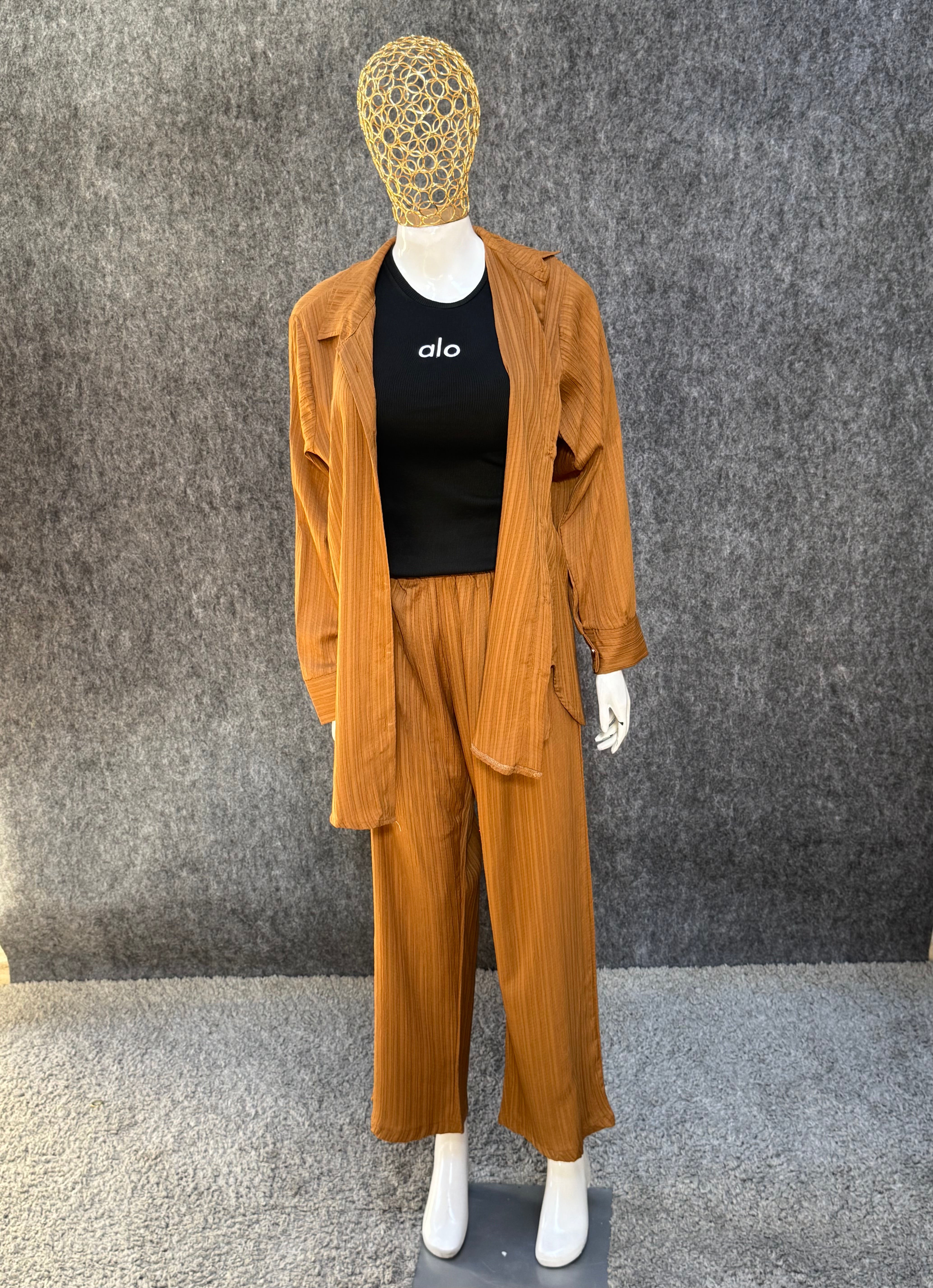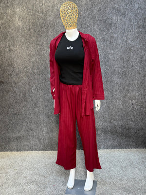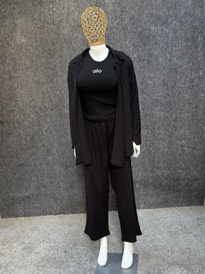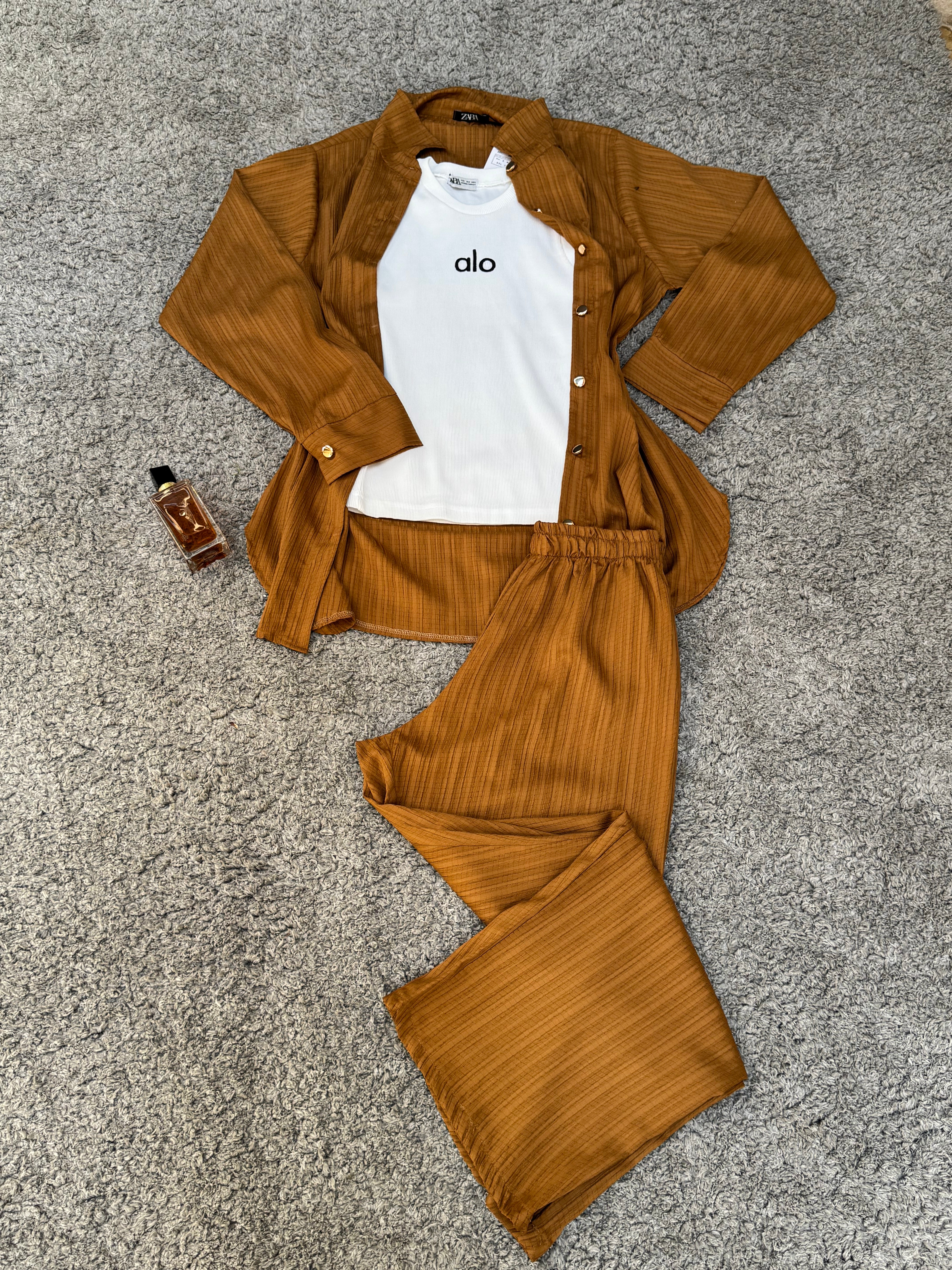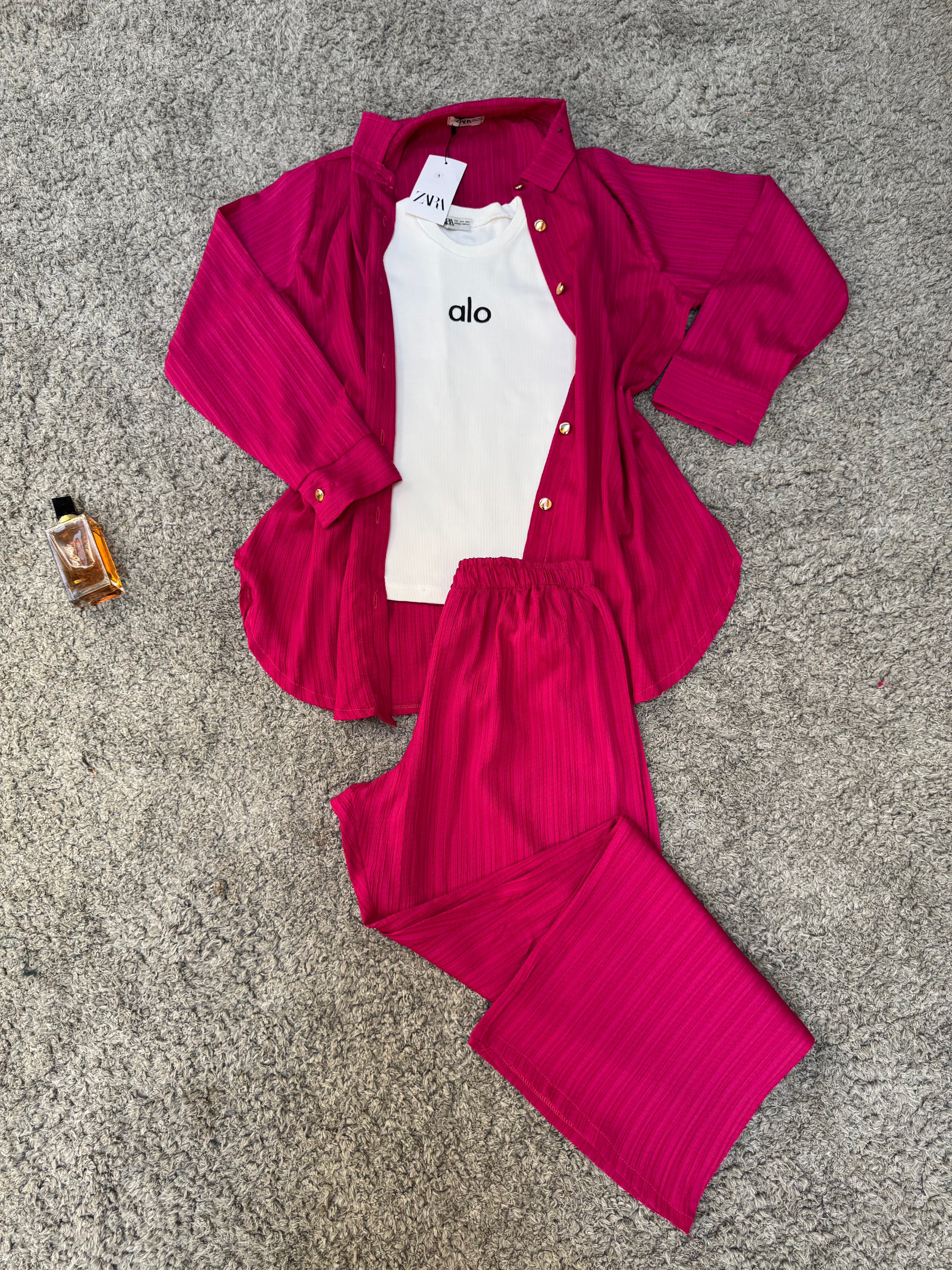 Elegant and versatile 3-piece women’s suit featuring trousers, a shirt, and a basic ALO top (white or black based on your selection). Made from high-quality imported Freska fabric – lightweight, breathable, and perfect for summer or year-round wear. Chic design with premium finishing for a polished, stylish look. Wear the shirt alone for a standout outfit or layer with the basic top for extra comfort and style.