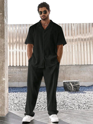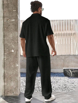 Trendy 2025 ZARA-style summer suit made of 100% cotton jacquard. Includes a short-sleeve shirt and pants in black or white. Lightweight, stylish, and perfect for outings, beach trips, and evening plans. Original-fit with ZARA tags.