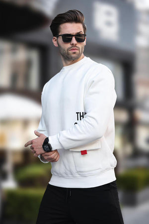 Oversize sweatshirt made from 100% soft cotton with a high-quality “Think Out Of The Box” print. Comfortable, stylish, and perfect for daily casual wear, featuring a practical front pocket and relaxed fit.