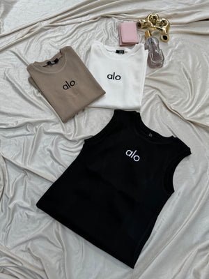 Stylish ribbed basic cut top made from soft stretch fabric for a flattering fit. Features embroidered logo and comes in three essential colors. One size fits comfortably from 55 to 85 kg. Perfect for casual everyday wear with a modern, minimal look.