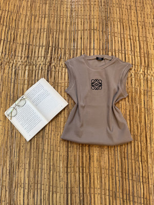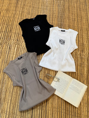 Chic ribbed basic cut top with elegant fit and soft stretchy fabric. One size fits comfortably from 55 to 85 kg. Features embroidered Loewy logo and comes in 3 essential colors. Perfect for everyday wear with a sleek, modern look.