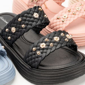 Stylish women’s slipper made from premium EVA. Features a unique X-strap design with crystal touches for a luxurious look. Soft on skin, water-resistant, and easy to clean. Comfortable low-rise sole for all-day support. Lightweight, easy to wear, and perfect for indoor or outdoor use.