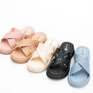 Premium women's slippers with a comfortable, elevated sole for all-day support. Water-resistant, easy to clean, and decorated with crystal accents for a luxurious touch. Soft, skin-friendly material prevents irritation. Available in 5 trendy colors, these lightweight slippers are perfect for both indoor and outdoor use. Sizes available: 38-42.