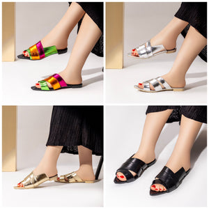 Ultra-light and elegant flat slippers made from quality leather with a durable Mauritanian sole. Perfect for everyday comfort with a chic finish.