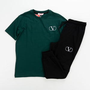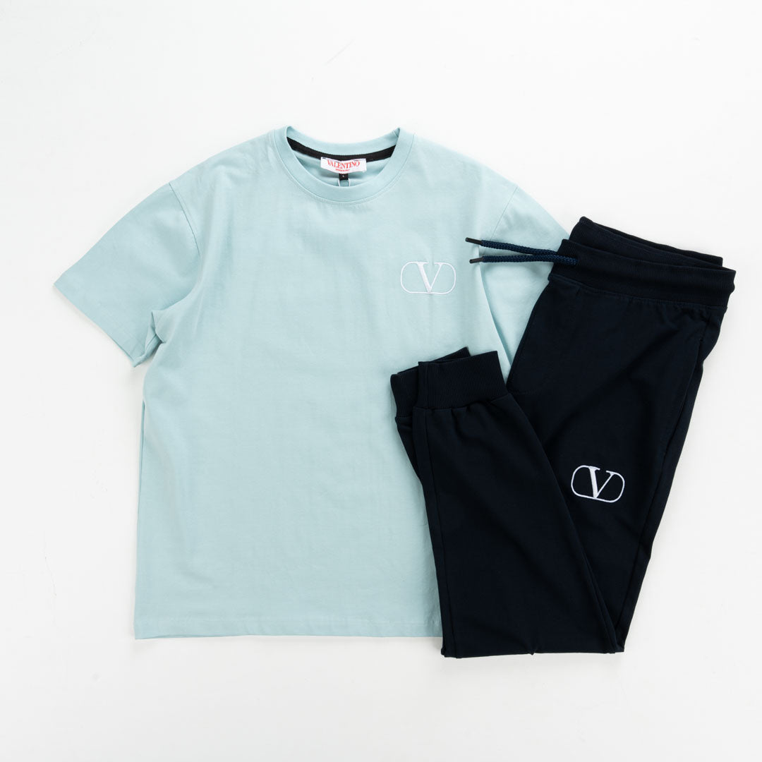 Trendy Valentino tracksuit designed for men with premium finishing and original mirror accessories. Features high-quality silk screen print, a super-soft cotton T-shirt, and summer cotton Milton pants for ultimate comfort and style.